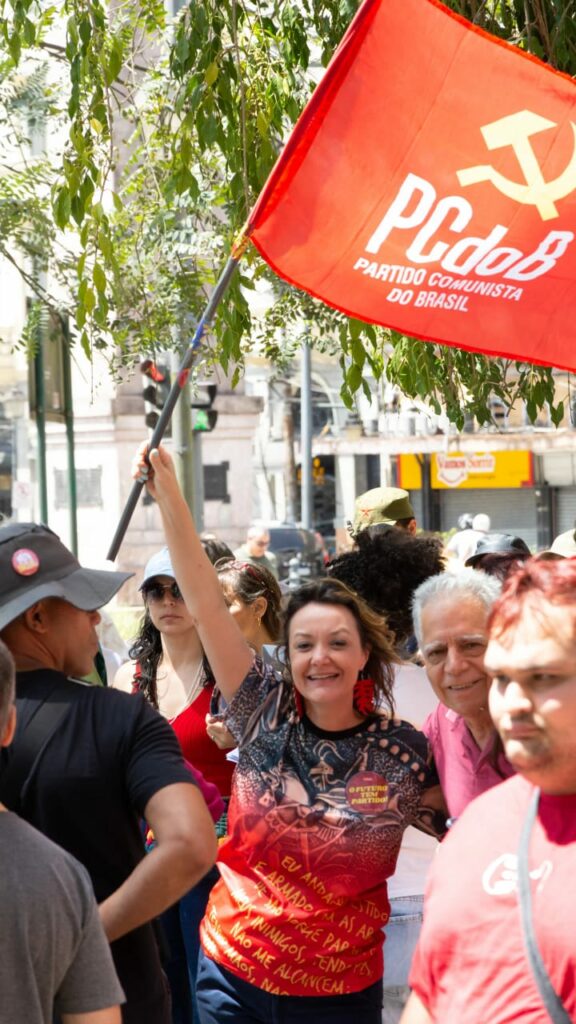 A presidenta do PCdoB em Petrópolis, Diana Iliescu, falou sobre o ato na cidade e a participação da militância comunista: