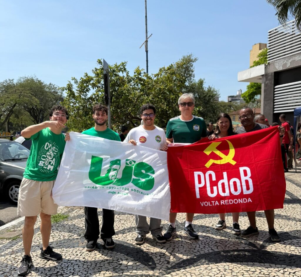 “O PCdoB de Volta Redonda esteve presente em um ato unificado com partidos e movimentos sociais contra a PEC da Bandidagem e a Anistia, além de reforçar a coleta de votos do plebiscito popular. A mobilização foi uma das mais expressivas dos últimos tempos na cidade, marcada pela ampla participação popular e pelo protagonismo da juventude, em especial dos militantes da UJS. Sob a coordenação do Secretário de Juventude, Gabriel Correa, a juventude assumiu a responsabilidade por uma das urnas e contribuiu para a arrecadação de quase 400 novos votos. O ato reafirmou a força da militância comunista e o engajamento do povo volta-redondense na luta em defesa da democracia e dos direitos sociais”.